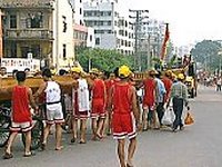 Benutzt werden die traditionellen langen Boote, auf denen bis zu 100 Ruderer Platz haben. Nur Männer übrigens, denn obwohl es schon seit dem 7./8. Jahrhundert Frauenmannschaften gibt, dürfen Frauen nicht auf die Dorfboote. Da halten es die Chinesen wie die Seeleute weltweit: Frauen auf dem Boot, glauben sie, bringen Unglück.