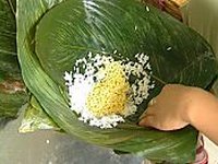 Seit über 2000 Jahren wird zu den Rennen Zongzi gefertigt. Dabei handelt es sich um dreieckige Klebreistaschen mit verschiedenen Füllungen, gehüllt in Bananen- oder Bambusblätter.