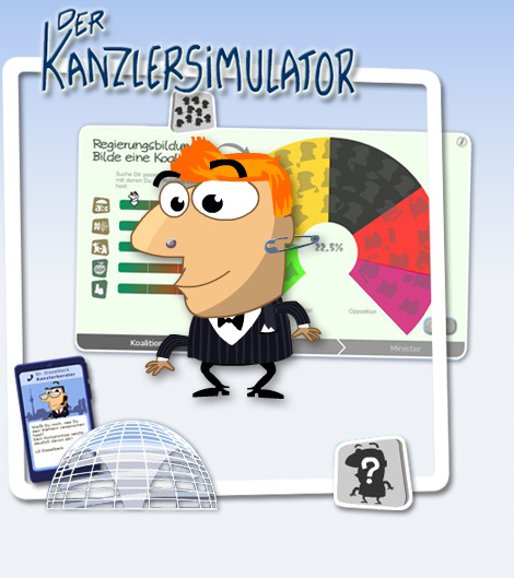 Kanzlersimulator:Bewähre dich als Bundeskanzler, schmiede Koalitionen und organisiere Mehrheiten für deine Politik. Aber lasse dabei deine Beliebtheitswerte nicht aus den Augen... Eine Politiksimulation ab Klasse 8