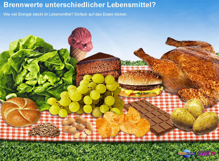Ein Eis hat sicherlich mehr Kilokalorien als Salat. Doch wie viel Energie steckt tatsächlich in diesen Lebensmitteln? In diesem Spiel kannst du die enthaltene Energie verschiedener Lebensmittel vergleichen.