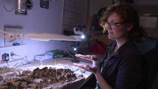 Anatomie (Mensch), Fossil, Knochen, Naturkundemuseum, Paläontologe, Paläontologie, Präparatorin, Skelett, Urpferd, Versteinerung