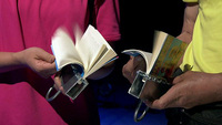 Eine Kraftprobe der besonderen Art: Ein Sumoringer soll an den Seiten zweier Bücher hängen. Aber welche Kräfte kommen da zum Einsatz? Und wer hat gewonnen, wenn die Seiten nachgeben? Mehr Fragen im Quiz.