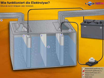 Die Elektrolyse ist schon seit 1800 bekannt. Damals machten verschiedene Forscher eine interessante Beobachtung: Leitet man elektrischen Strom durch Wasser, steigen an den beiden Metallkontakten (Elektroden) Gasbläschen auf – Wasserstoff und Sauerstoff, wie sich schnell herausstellte. In diesem Spiel kannst du lernen, wie es dazu kommt.