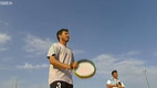 Sie erinnern an Tamburins, die Schläger dieses italienischen Spiels, des Tamburello. Doch der Ball, der mit ihnen geschlagen wird, kommt mit großer Wucht geflogen - entsprechend robust sind die Schläger und hart ihre Bespannung. Im 18. Jahrhundert hieß das Spiel Bracciale, die Adligen spielten es in ihren Palästen. Heute treten die Mannschaften im Freien gegeneinander an.