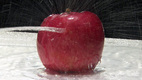 Mit hohem Wasserdruck und einem scharfen Wasserstrahl rücken wir einem Apfel auf die Pelle. Mal sehen, ob er sich zerschneiden lässt.