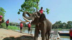 Wir wollen einen Elefanten wiegen, indem wir ihn auf ein Floß bugsieren: Mit dem Dickhäuter verändert sich der Tiefgang des Floßes. Ob sich so sein Gewicht feststellen lässt?