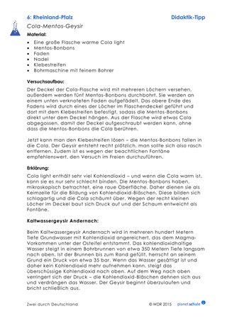 Eine besondere Sehenswürdigkeit ist der Kaltwassergeysir in Andernach (Timecode: 19:13 - 23:08 Min.). Mit einem Experiment kann die Funktionsweise dieses Geysirs nachvollzogen werden.