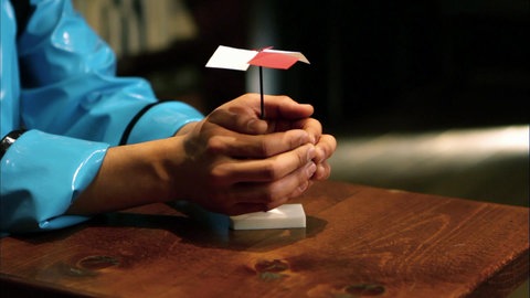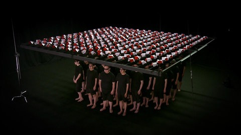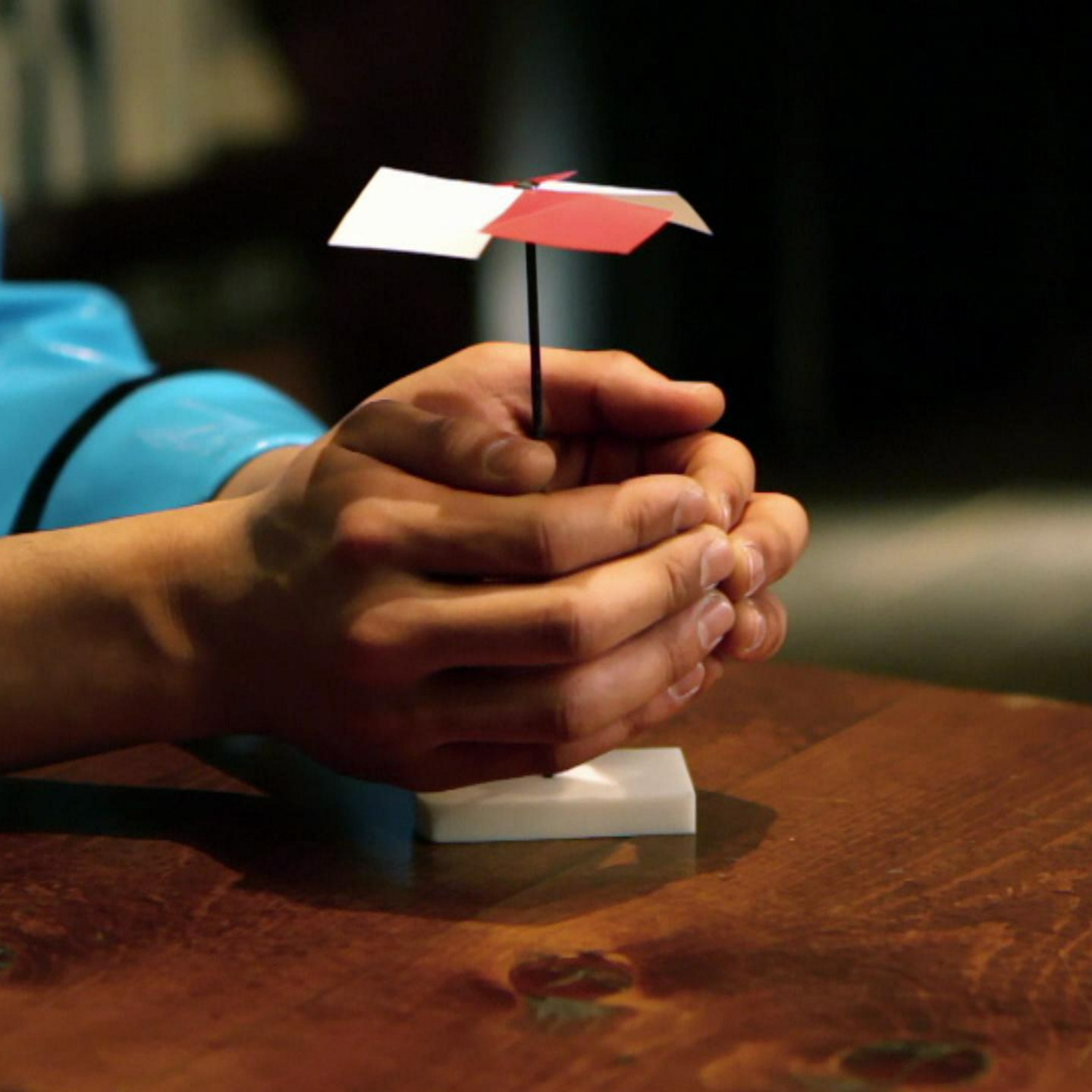 Ein Windrad dreht sich, wenn sich ein Wärme abstrahlendes Objekt darunter befindet: Die erwärmte Luft steigt nach oben, Aufwind entsteht und setzt es in Bewegung. Ob wohl auch Körperwärme Aufwind erzeugen kann? Das probieren wir aus: Wir basteln 256 Windräder aus Papier und bringen sie auf einem Gestell an. Fünfzig Männer treten an und positionieren sich unter dem Gestell. Wird ihre Körperwärme ausreichen, um die Windräder anzutreiben?