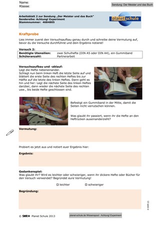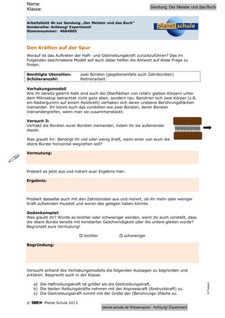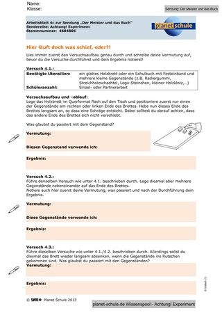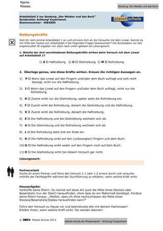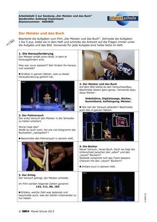 Der Film „Achtung! Experiment – Der Meister und das Buch“ bietet zusammen mit den Arbeitsblättern eine anschauliche und faszinierende Möglichkeit, erste Einblicke in das Thema „Reibungskraft“ zu erhalten.