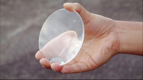 Wenn wir Papier im Sonnenlicht unter eine Lupe halten, brennt es, denn die Lupe bündelt die Sonnenstrahlen. Sie werden im Brennpunkt so heiß, dass sich das Papier entzündet. Aber wie wird Licht gebündelt? Das Geheimnis steckt in der Form der Lupe: Sie ist gewölbt. Brauchen wir eigentlich Glas oder können wir auch mit Eis Feuer machen, wenn wir es wie eine Lupe formen? Um das herauszufinden, verpasst unser Team einem 200 Kilogramm schweren Eisblock den richtigen Schliff.