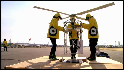 Wenn wir ein Gummiband auseinanderziehen und loslassen, zieht es sich von selbst wieder zusammen. Dabei übt es Kraft aus – Spannkraft. Bündeln wir einzelne Gummibänder zu Strängen, können wir diese Spannkraft erhöhen. Aber wie groß ist sie überhaupt und wofür können wir sie nutzen? Als erstes versuchen wir, mit Gummibändern einen Propeller zu starten. Unser Team macht sich an die Arbeit und knüpft Tausende von Gummibändern zusammen.