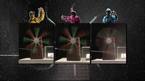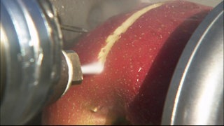Mit einem Wasserstrahl einen Apfel zerschneiden – ob das möglich ist? Mit einer gewöhnlichen Wasserpistole klappt es nicht: Ihr Strahl ist zu schwach. Auch die Wasser-Pumpgun schafft es nicht, obwohl sie mehr Druck erzeugen kann.
