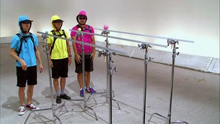 Welchen Regeln folgen fallende Kugeln? Ist es wichtig, wie groß und wie schwer sie sind? Und was geschieht, wenn man sie nacheinander zu Boden fallen lässt? Unser Team beobachtet das Verhalten verschiedener Kugeln und beschließt, mit den gewonnenen Erkenntnissen einen Großversuch zu starten.