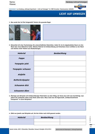 Im Rahmen der SWR Reihe „Achtung! Experiment“ erschien unter anderem der Film „Schatten auf Wanderschaft“. So kann nun im Anschluss darauf eingegangen werden, dass da, wo Licht ist, auch Schatten vermutet werden kann. Mithilfe der Sendung können Schüler eigene Erfahrungen überprüfen und Ergebnisse sichern.