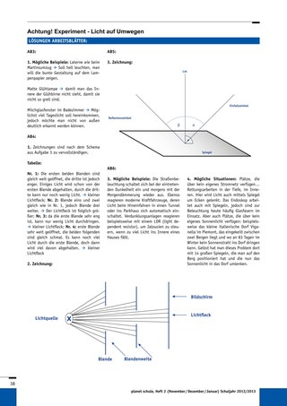 • Die letzte Regel hingegen ist so plausibel, dass sie nicht mit einem Versuch überprüft werden muss: „Im hellen Tageslicht ist ein Lichtstrahl nicht so ohne Weiteres zu erkennen.“ Künstliche Lichtquellen sind bei Tageslicht also überflüssig, es kann Energie eingespart werden. Die Schüler nennen hierzu Beispiele und überlegen sich außerdem Situationen, bei denen die Idee mit dem Spiegel als Lichtlieferant tatsächlich wertvoll wäre. (Arbeitsblatt 6)