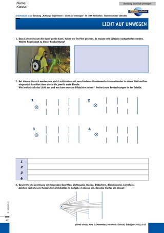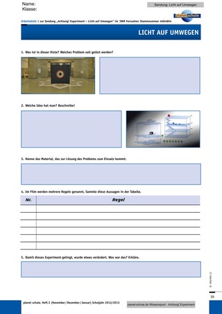 Das Arbeiten mit Freihandversuchen zum Erfassen von Phänomenen hat sich bewährt. Die Schüler arbeiten damit gerne und sind motiviert. Die Transferfragen sollen den Alltagsbezug herstellen. „Licht auf Umwegen“ mit diesen Materialien zu bearbeiten und zu besprechen, wird zwischen zwei bis vier Stunden umfassen, je nach Ausgangssituation in der NWA-Gruppe. Die Arbeitsblätter wechseln in ihrer Anredeform bewusst zwischen Plural und Singular, da zwar die Versuchsphasen gemeinsam durchgeführt werden, jedoch einige Aufgaben in Einzelarbeit bewältigt werden sollen. So wechseln sich die Sozialformen bewusst ab und fördern die Konzentration nach Versuchsphasen.