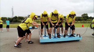 Pumpen wir mit einer Luftpumpe Luft in einen Ball, entsteht ein hoher Druck in der Pumpe, denn die Luft wird beim Pumpen komprimiert. Wie viel Druck komprimierte Luft ausüben kann, sehen wir, wenn wir den Ball zu stark aufpumpen: Er platzt. Können wir Druckluft auch sinnvoll nutzen? Zum Beispiel, um ein Auto zum Fahren zu bringen? Ein Auto mit Druckluftmotor gibt es schon, den Ku:rin. Sein Motor wird mit Druckluft aus Flaschen angetrieben. Wir wollen versuchen, ein Auto mit Luft aus Luftpumpen in Gang zu bringen.