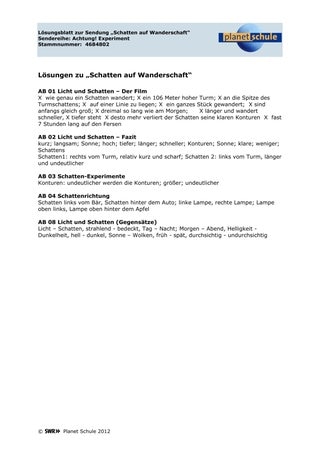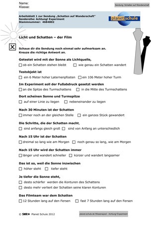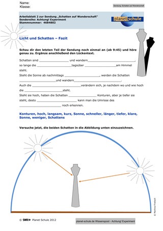Der Film zeigt den Kindern auf beeindruckende Weise, dass Licht immer Schatten wirft und dass sich dieser Schatten verändert, je nachdem, wie die Lichtquelle zu einem Objekt steht. Selbstverständlich hätte man die Wanderschaft eines Schattens auch an einem kleinen Objekt zeigen können, aber gerade die spektakuläre Art und Weise der riesigen Fußabdrücke, die der Turmschatten hinterlässt, bleibt den Kindern im Gedächtnis haften. Objekte aus den Erfahrungsbereichen der Kinder lassen sich anschließend im Unterricht schnell finden, um das Gelernte zu übertragen.