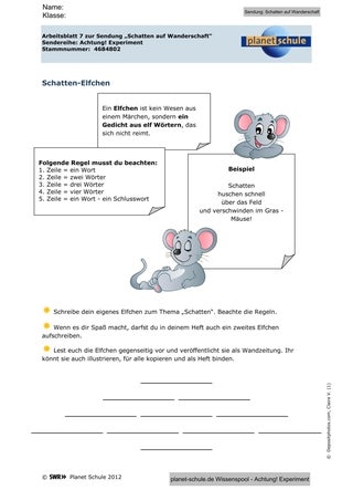 Die Elfchen der Kinder (Arbeitsblatt 7) können auch zu einem Heft zusammengebunden und vorher entsprechend illustriert und für alle kopiert werden.