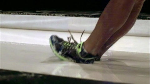 Wir untersuchen eine Flüssigkeit mit erstaunlichen Eigenschaften. Wird sie unter Druck gesetzt, fließt sie nicht davon, sondern verfestigt sich. Lässt aber der Druck nach, so wird sie augenblicklich wieder flüssig. Für eine Gruppe Sportler wird das zur Herausforderung. Sie sollen ein Becken überqueren, das mit dieser Flüssigkeit gefüllt ist. Auf unterschiedliche Weisen, in unterschiedlichem Tempo aber mit demselben Ziel: Sie müssen das Flüssige fest machen.