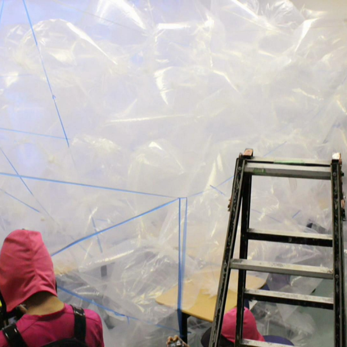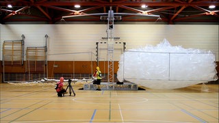 Wir wollen wissen, was Luft wiegt - die Luft aus einem Klassenzimmer. Dazu müssen wir die Luft erst einmal einsammeln. Das versuchen wir mit großen Plastiktüten, ein mühsames Unterfangen! Die prall gefüllten Tüten legen wir auf eine eigens für diesen Zweck gebaute Waage und stellen fest: So wird das nichts. Wir müssen uns etwas Neues einfallen lassen, um dem Gewicht der Luft auf die Schliche zu kommen. Vielleicht klappt es, wenn wir die Luft komprimieren.