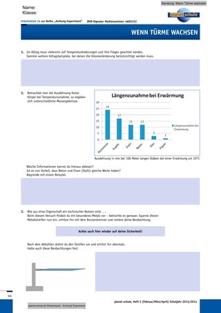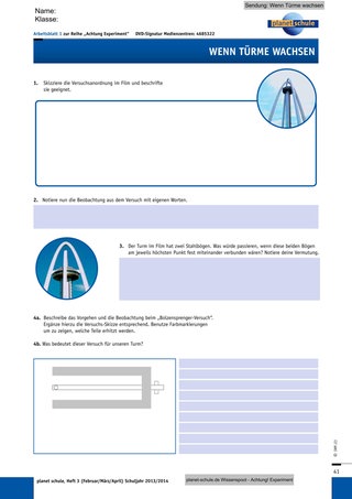 Welchen Wert hat die Information, dass ein Turm im Laufe eines Tages „wächst“ und auch wieder „kleiner“ wird? Betrachtet man den Film „Wenn Türme wachsen“, so wird man auf anschauliche Weise Zuschauer eines naturwissenschaftlichen Versuchs, der untersucht, wie sich Stahl unter Zufuhr von Wärme verhält. Ein erster Alltagsbezug ist ermöglicht, da als Beobachtungsgegenstand ein Turm ausgemessen und ausgewertet wird.