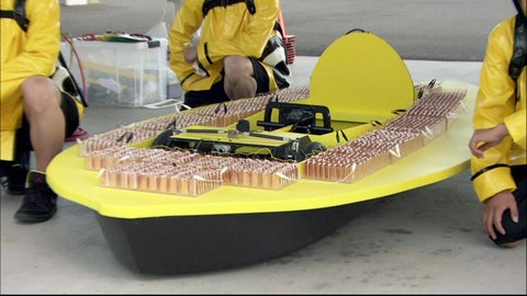 Hängen wir ein Magnesium- und ein Kupferplättchen in Zitronensaft, so entsteht elektrische Spannung, denn Saft und Metalle reagieren miteinander. Wir können einen Propeller antreiben. Ob wir mit Zitronensaft auch ein Auto zum Laufen bringen können? Das testen wir auf der Rennstrecke – mit einem ganz speziellen Rennwagen. Mit 1400 Zitronenbatterien bestückt, schicken wir ihn an den Start. Eine Strecke von 200 Metern soll er bewältigen. Ob das zu schaffen ist?