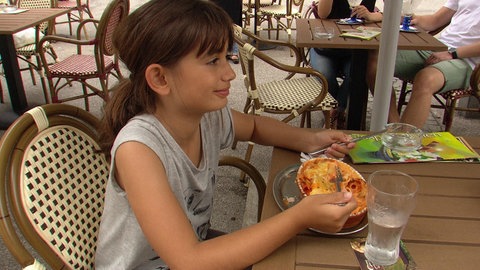 Bei einer Straßen-Umfrage erklären uns Menschen, was sie gerade essen und ob Fleisch dabei ist. Die Folge kann sowohl zum Thema "Einkaufen" als auch als Diskussionsanlass über unterschiedliches Essverhalten eingesetzt werden.