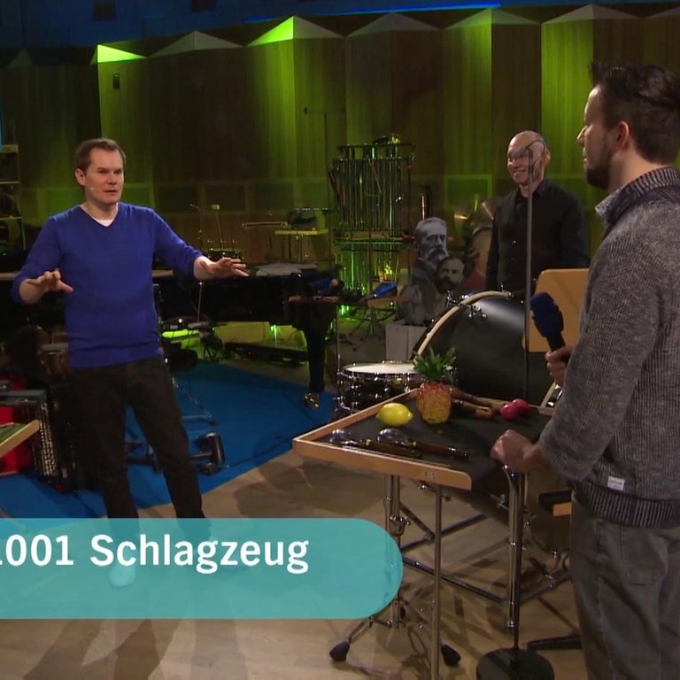 Zum Schlagzeug im Orchester gehören viele verschiedene Instrumente. Manche haben Felle, andere sind aus Metall oder aus Holz. Zusammen mit zwei Schlagzeugern aus der NDR Radiophilharmonie zeigt Malte Arkona, wie die verschiedenen Instrumente aussehen und wie sie klingen.