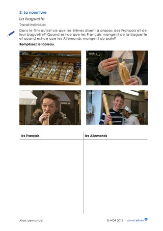 Wann essen Franzosen Baguette und wann essen Deutsche Brot? Die Schüler füllen die Tabelle aus.