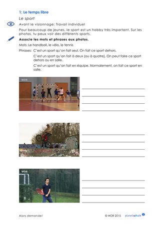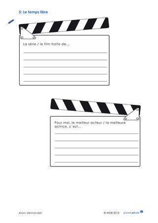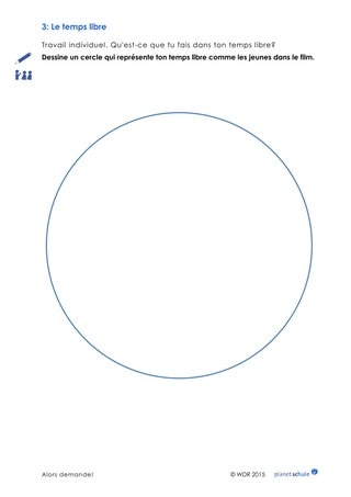 Was machen die Schüler in ihrer Freizeit? Die Schüler tragen ihre Freizeitaktivitäten in den Kreis auf dem Arbeitsblatt ein, genau wie die Befragten im Film. Anschließend vergleichen die Schüler ihre Freizeitkreise mit dem Kreis ihres Sitznachbarn. Unterschiede und Parallelen werden beschrieben.