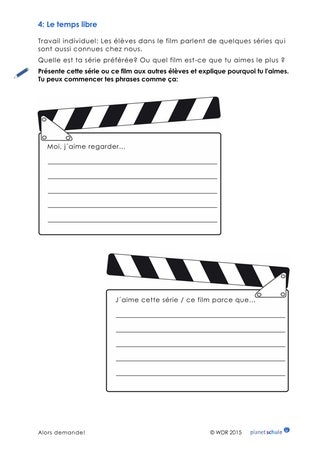 Welche ist die Lieblingsserie der Schüler? Welchen Film mögen sie am liebsten? Die Schüler füllen das Arbeitsblatt aus und stellen den anderen ihre Lieblingsserie / ihren Lieblingsfilm vor.