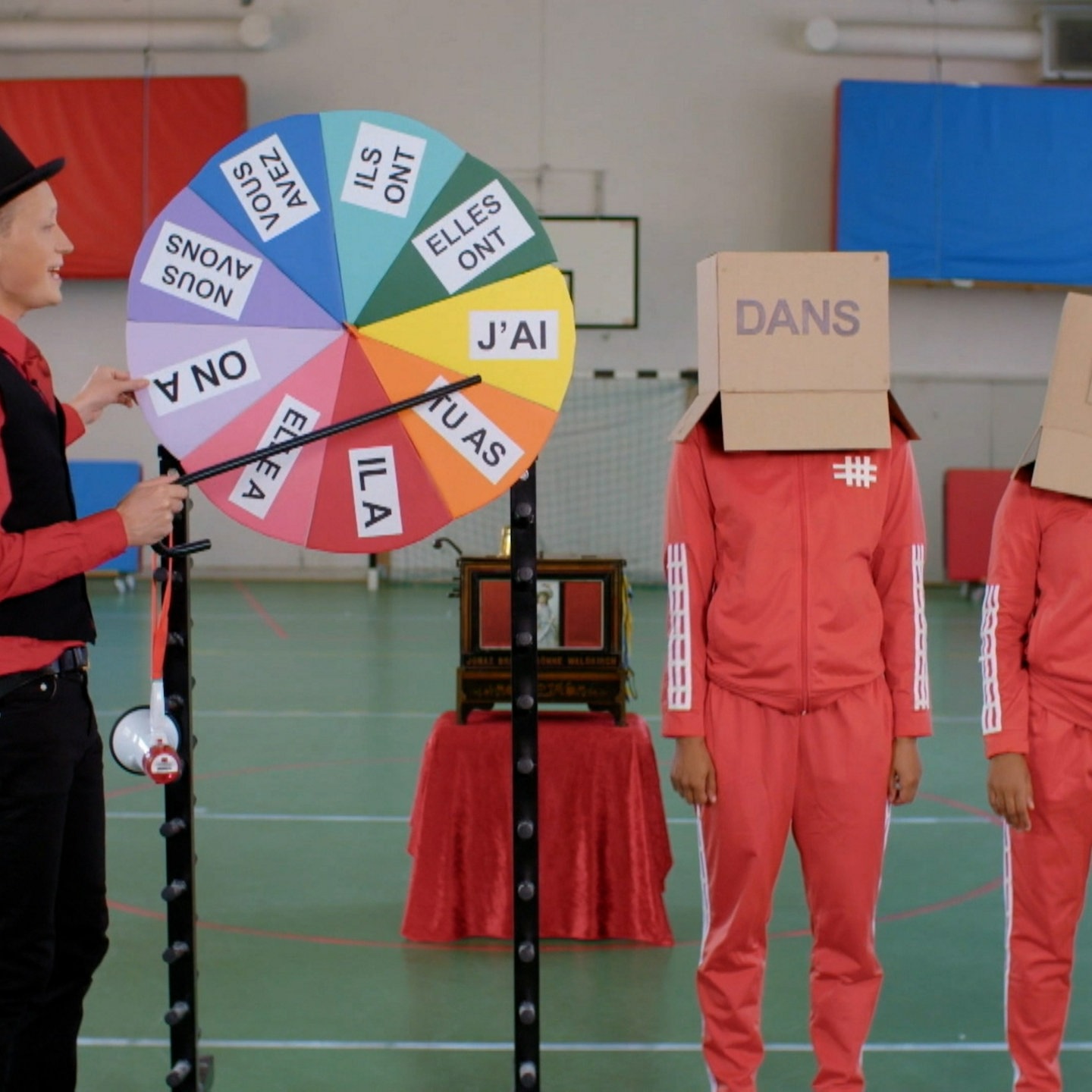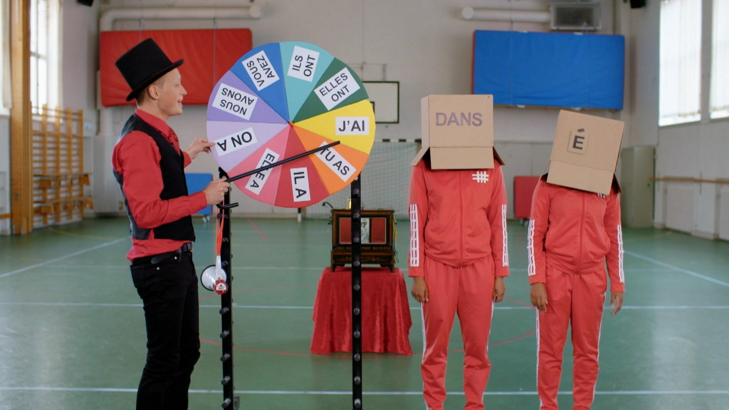 Wie erzählt man auf Französisch von Dingen, die in der Vergangenheit passiert sind? Jonas dreht mit seinen Helfern das Glücksrad und erzählt, wie man das passé composé bildet.
