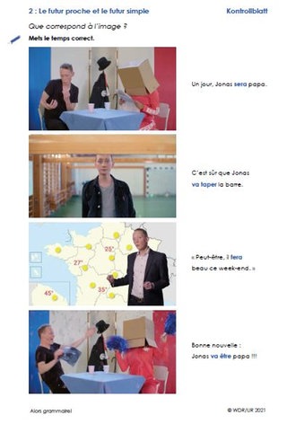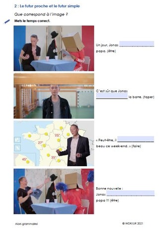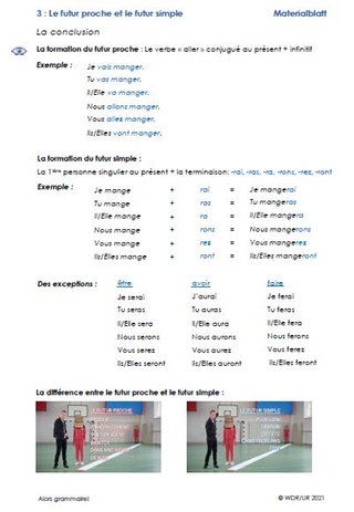 Der Film zeigt an vielen Beispielen, in welchen Situationen welche Form des futur verwendet wird. Die Klasse verschafft sich darüber zunächst einen Überblick mit dem gesamten Filmclip.