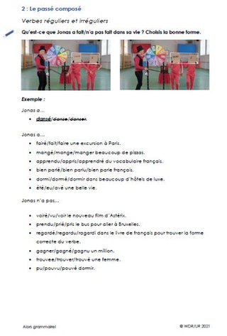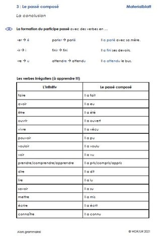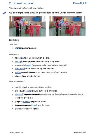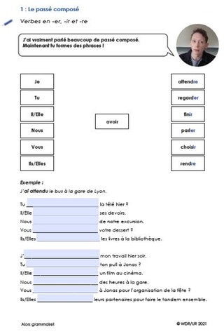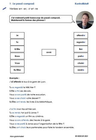 Im ersten Teil des Films (bis Timecode 7:11 Min.) zeigt Jonas, wie das passé composé bei den regelmäßigen Verben gebildet wird. Die Schülerinnen und Schüler wenden dies im Anschluss mit einer Übung auf Arbeitsblatt 1 an.