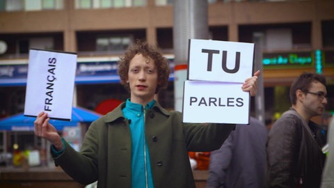 Wie konjugiert man das Verb "avoir" im Präsens? Lisa soll das mit Beispielen zeigen und zwar mit Leuten, die sie zufällig auf der Straße trifft. Lisa nimmt die Herausforderung an und macht sich mit einer Tüte voller Requisiten auf den Weg. Wird sie es schaffen, die Aufgabe in einer Stunde zu erledigen? Moderator Jonas Modin bespricht unterdessen gebräuchliche Redewendungen, in denen Formen von „avoir“ vorkommen.