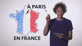 Vor, hinter, neben, auf, in, unter: Anton und Moderator Jonas Modin spielen in den Straßen von Lyon ein Präpositions-Versteckspiel mit zufällig ausgewählten Präpositionen und Nomen. Warum soll man sich nicht mal "auf einem Tisch" oder "hinter einem Hund" verstecken? Im Vertiefungsteil erklärt Jonas den richtigen Gebrauch von Präpositionen vor Länder- und Städtenamen.