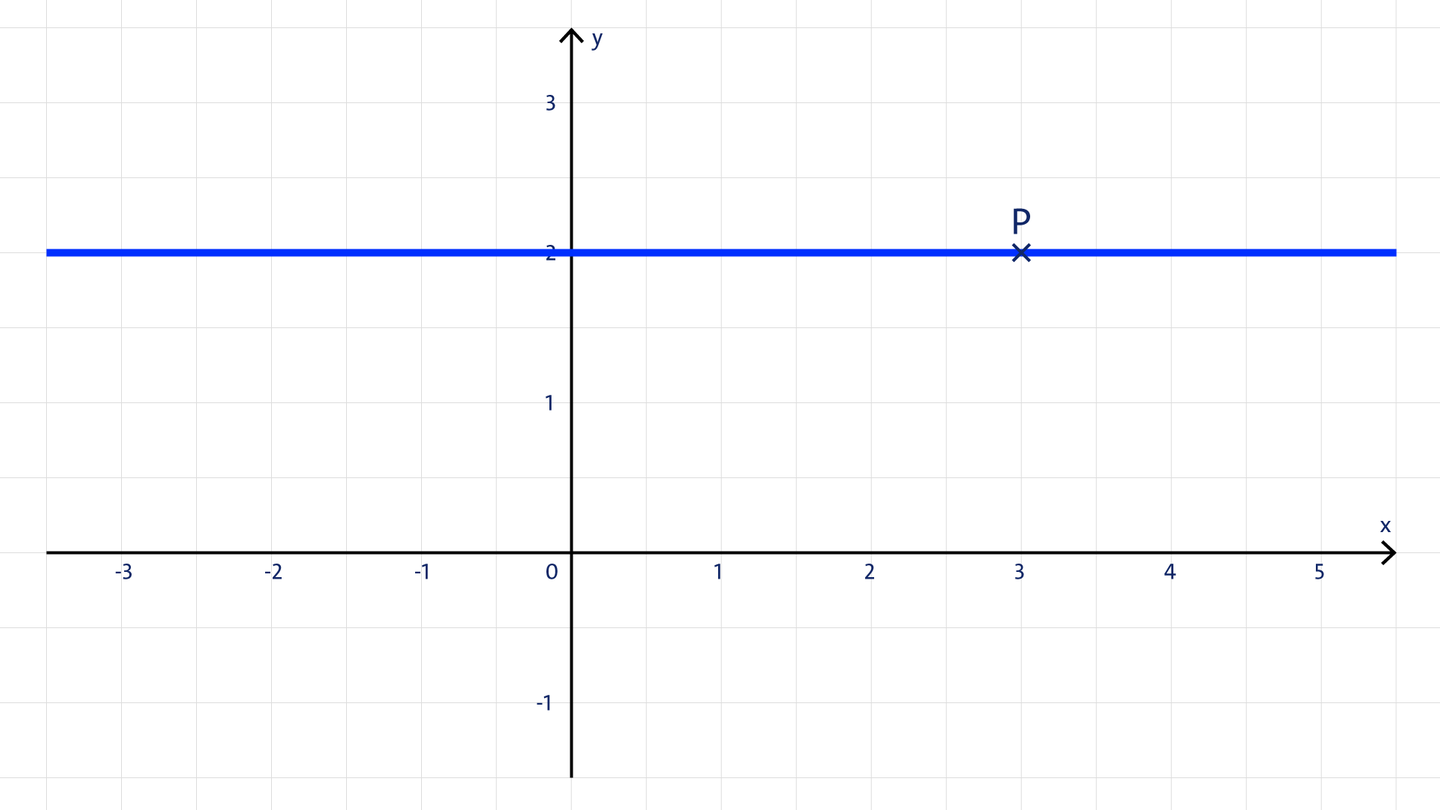 Gib die Gleichung der Geraden an, die parallel zur x-Achse und durch den Punkt P(3|2) verläuft und zeichne den Graphen.