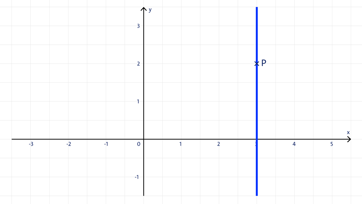 Gib die Gleichung der Geraden an, die parallel zur y-Achse und durch den Punkt P(3|2) verläuft und zeichne den Graphen.