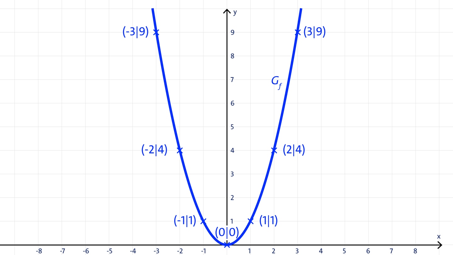 Beispielaufgabe: Wertetabelle und Graph der Funktion f mit f(x) = x²
