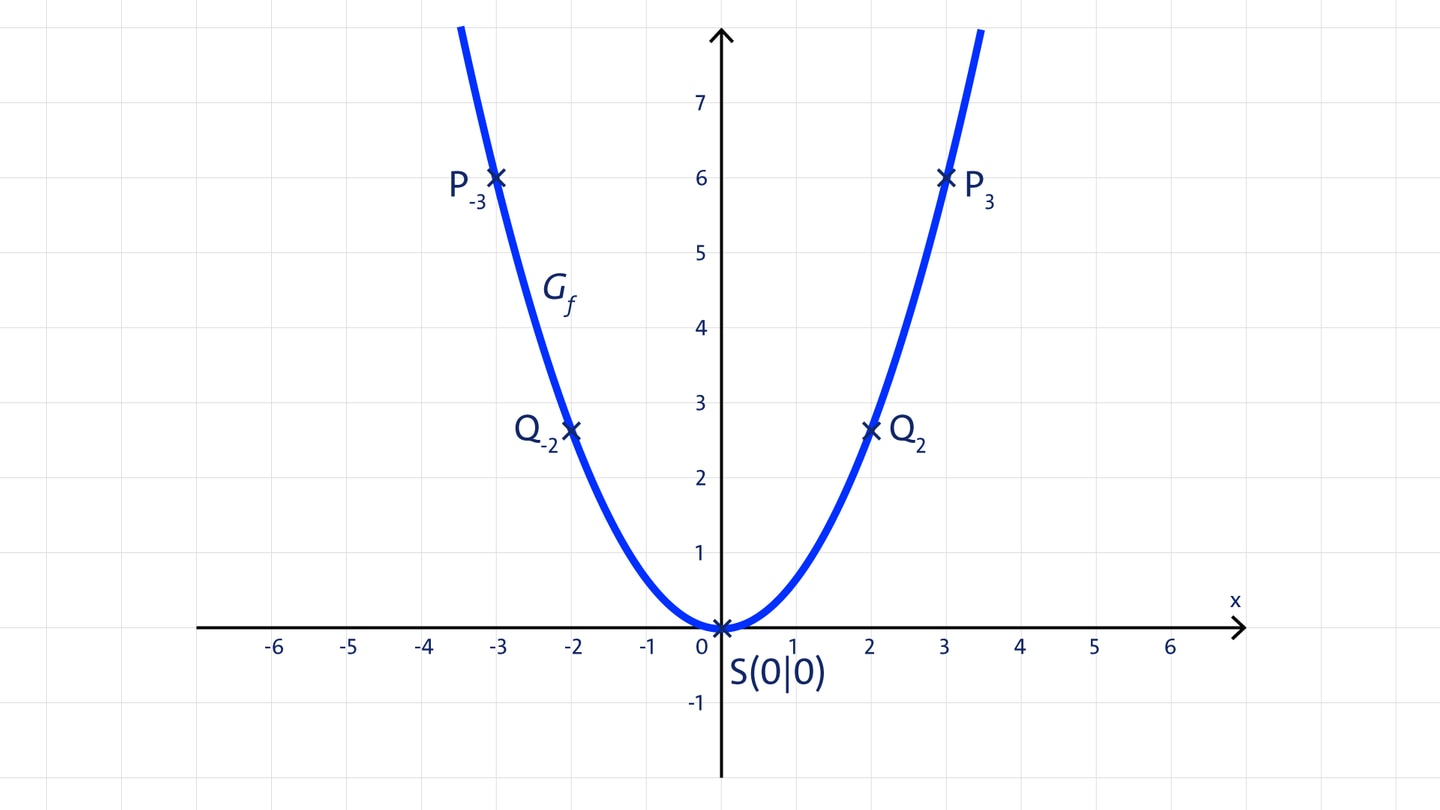 Wegen der Achsensymmetrie zur y -Achse gilt f ( x ) = f ( − x ) ⇒ P − 3 ( − 3 | 6 ) .