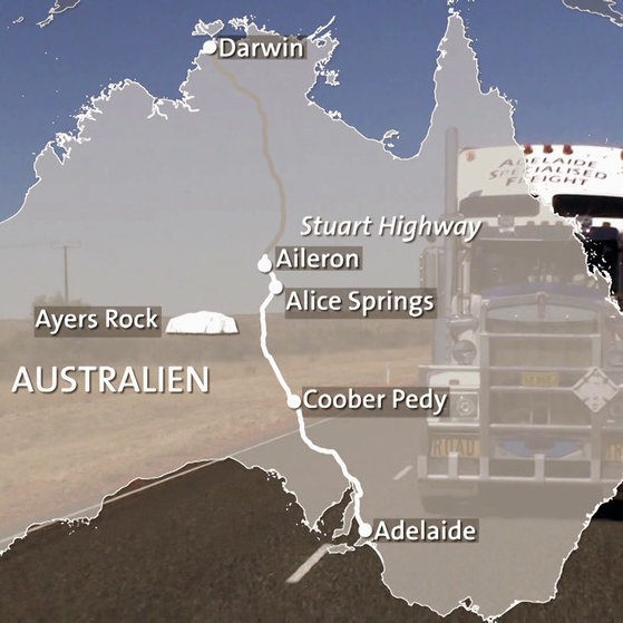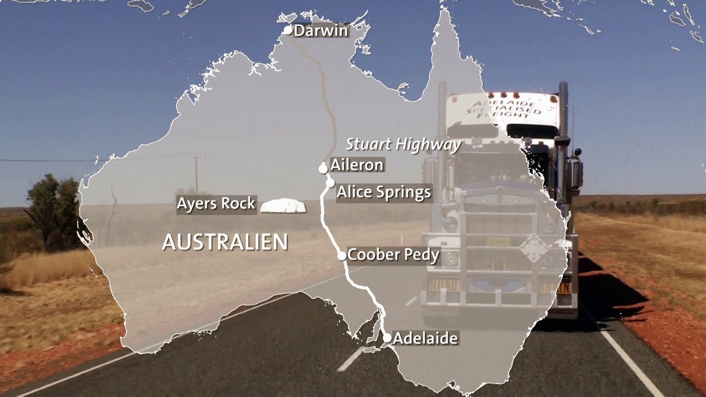 Mit ihrem Road-Train bringen die beiden Trucker Rick und Vicky jede Woche Lebensmittel von Adelaide in Südaustralien nach Darwin im Northern Territory. Der 3000 Kilometer lange Stuart Highway führt sie vom fruchtbaren Süden durch Gras-Savannen, Wüsten, Dornbuschsavannen und Trockenwälder bis in den tropischen Norden. Auf ihrem Weg liegen die Opalgräberstadt Coober Pedy, der Uluru Nationalpark, eine Rinderfarm und ein subtropischer Nationalpark.