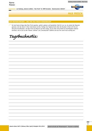 - Zum Weiterschreiben – was von Max Frisch hängen bleibt (Arbeitsblatt 7)