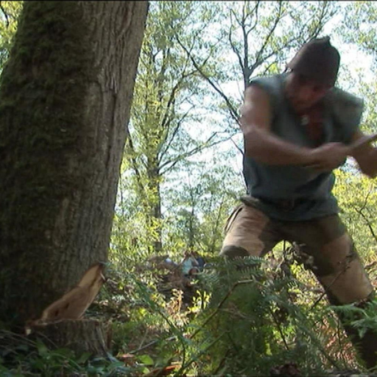 Waldarbeiter fällen Bäume und schlagen die Stämme zu Balken zu. Oft hat man die Stämme vor Ort nur grob bearbeitet und dann zwei bis drei Jahre gelagert. Danach sind sie ausgetrocknet und leichter zu transportieren. Zudem verzieht sich das Holz jetzt nicht mehr.