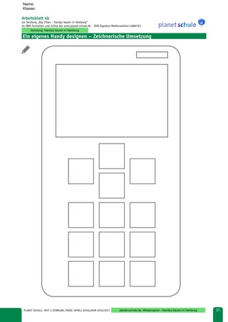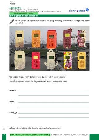 Die Arbeitsblätter 4a und 4b bieten eine Kreativaufgabe, die das Beispiel „Handy designen“ aus dem Film aufgreift. Auch wenn die Schüler ihr eigenes Handy vielleicht nicht selbst bauen können, können sie es zumindest einmal designen. Die Aufgabe eignet sich als Zusatzaufgabe für „Schnelle“ im Anschluss an Arbeitsblatt 3 sowie als Hausaufgabe.