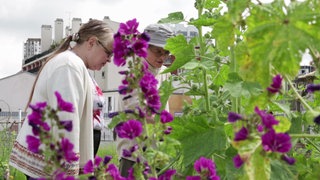 Speise-Kürbisse, Zucchini und Paprika auf den Dächern von Paris? Die Initiative „Gemeinschaftsgärten“ macht es möglich. Aber hoch oben gedeiht nicht nur Gemüse, sondern auch das „Miteinander“. Die Sozialarbeiterin Valérie Navarre koordiniert die Initiative, in der alle willkommen sind – ob Rentner, Künstler, Studenten, Sozialhilfeempfänger oder Menschen mit Behinderung. Über das gemeinsame Gärtnern hinaus sind die Dachgärten ein Ort, an dem sich die Leute begegnen, austauschen und gemeinsam Erfahrungen sammeln können. Armand und Michèle haben sich auf Bienenzucht spezialisiert und festgestellt, dass es den Bienen in der Großstadt erstaunlich gut gefällt…