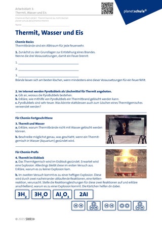 Material: Arbeitsblatts 3: Thermit, Wasser und Eis
