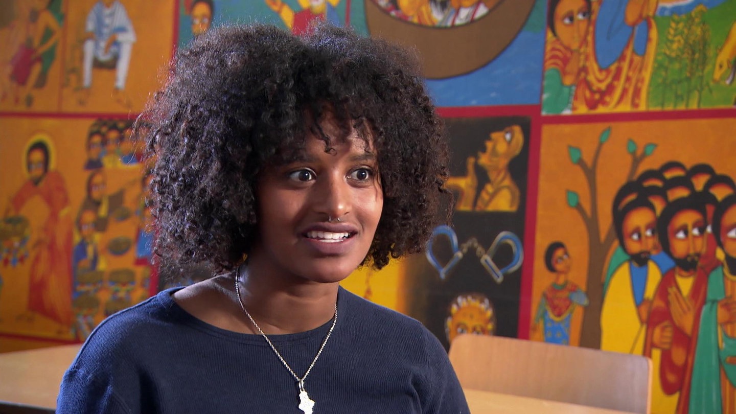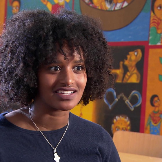 Anders Tezebit Wiskandt, die noch nicht so lange das Team im Petershof unterstützt. Sie legt Wert darauf, dass man anderen „aus einem guten Herzen“ helfen soll (Min. 03:23). Aus ihrer Sicht ist das etwas anderes, als „aus dem Glauben heraus oder aus dem heraus, was in der Bibel steht“ zu handeln. Für Tezebit steht vor allem aber das, was man „aus einem guten Herzen macht“, im Gegensatz zu einem Handeln, das den eigenen Vorteil sucht („weil man einen Vorteil daraus haben will, um […] in den Himmel zu kommen“). Später (Min. 12:27) spricht sie noch einmal von ihrer Motivation. Sie habe „Glück gehabt“, von einer Familie adoptiert worden zu sein, die ihr sehr helfen konnte. Darum möchte sie benachteiligten Kindern helfen. Hier zeigt sich eine Haltung der Dankbarkeit als Triebfeder, ein zentrales Element christlicher Lebensorientierung.