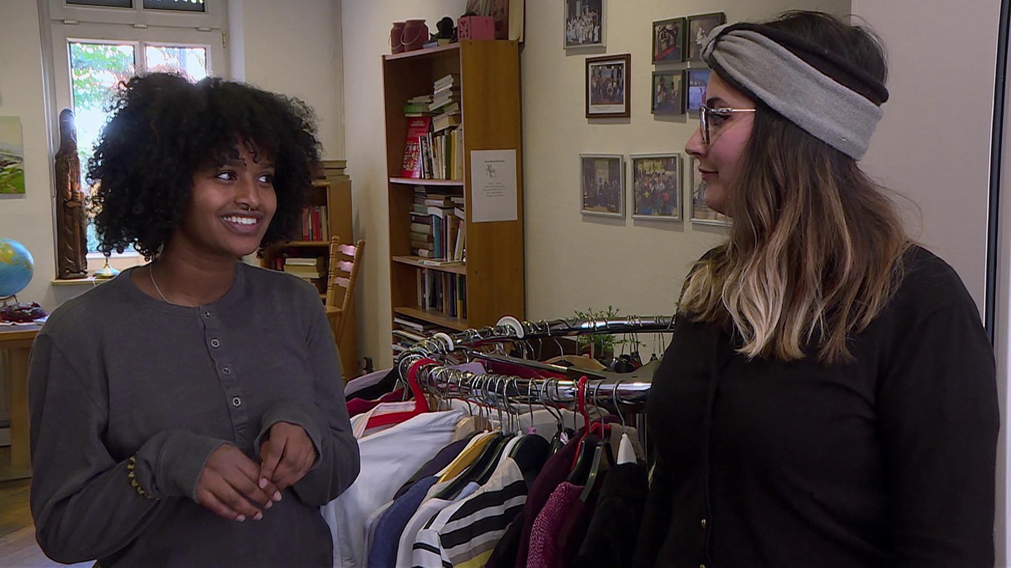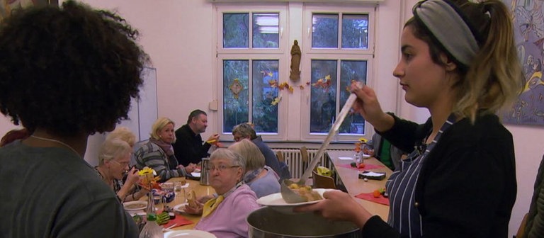 Alyn und Tezebit sind freiwillige Helferinnen im Petershof im Duisburger Stadtteil Marxloh. Das katholische soziale Zentrum ist Anlaufstelle für viele Menschen in dem Brennpunktviertel. Leiter der Einrichtung ist Pater Oliver, der Pfarrer der Gemeinde. Menschen verschiedener Kulturen und Religionen arbeiten hier eng zusammen. Neben Essen und Kleidung bieten sie den Besuchern vor allem auch Gesprächsmöglichkeiten an.