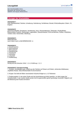 Nachdem die erste Sequenz (TC 00:00–05:09) gezeigt wurde, werden die entsprechenden Informationen im Plenum besprochen: Beginn des Industriezeitalters, Erfindung der Dampfmaschine mit all den Folgen (Entstehung von Fabriken, Anwachsen der Bevölkerung, Erfindung der Eisenbahn, steigende Mobilität der Menschen …). Zugleich können die anfänglichen Vermutungen nun abgeglichen werden.